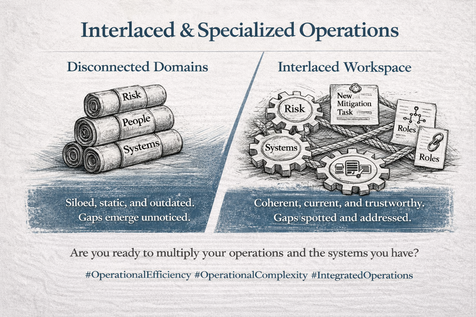 This natural interlacing ensures the operating model remains coherent, current, and trustworthy over time. Without this capability, documentation inevitably becomes fragmented, outdated, and distrusted — undermining its value.