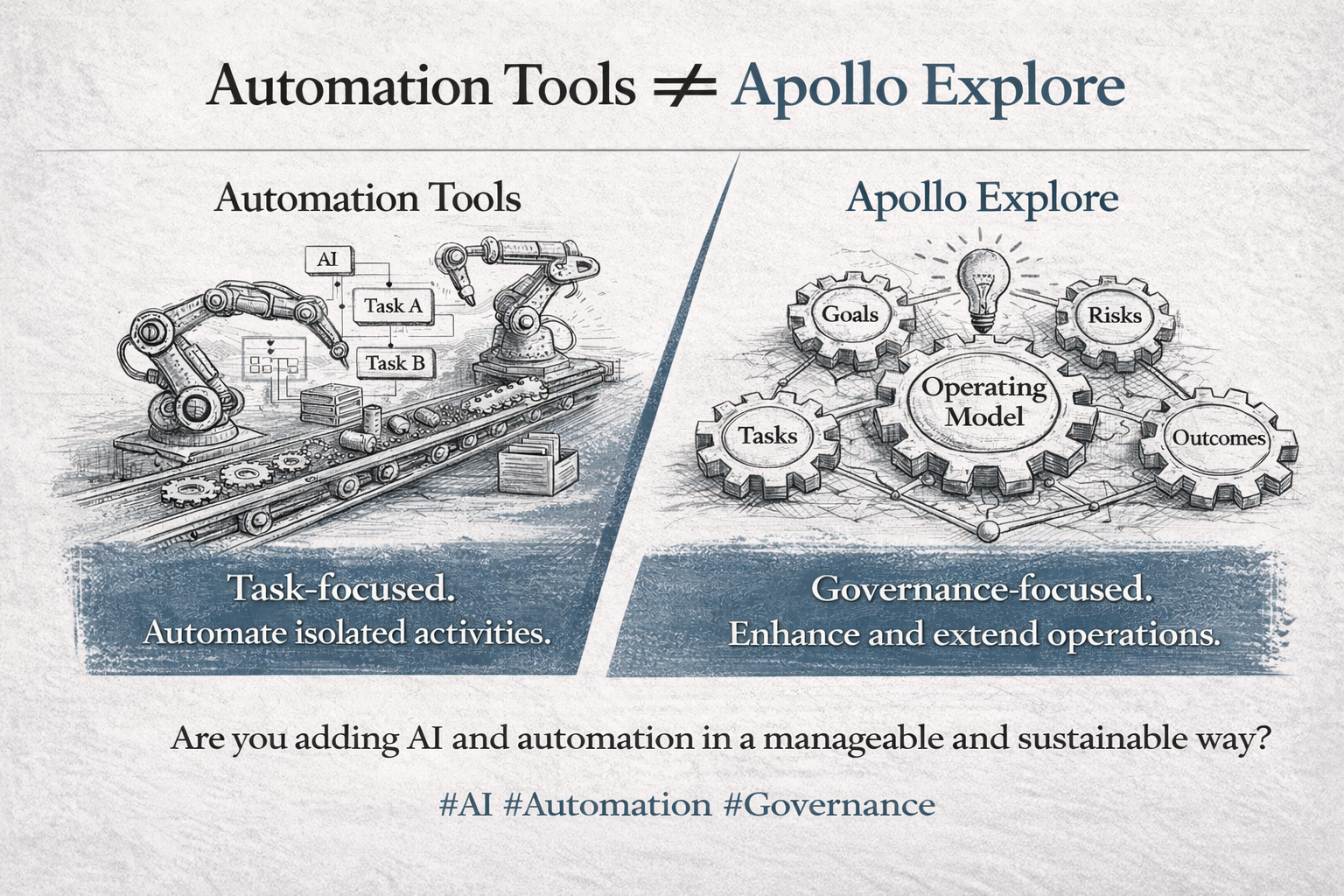 Appollo Explore incorporates AI in a fundamentally different way, using it to strengthen and govern the operating model itself, rather than treating AI as a standalone capability.