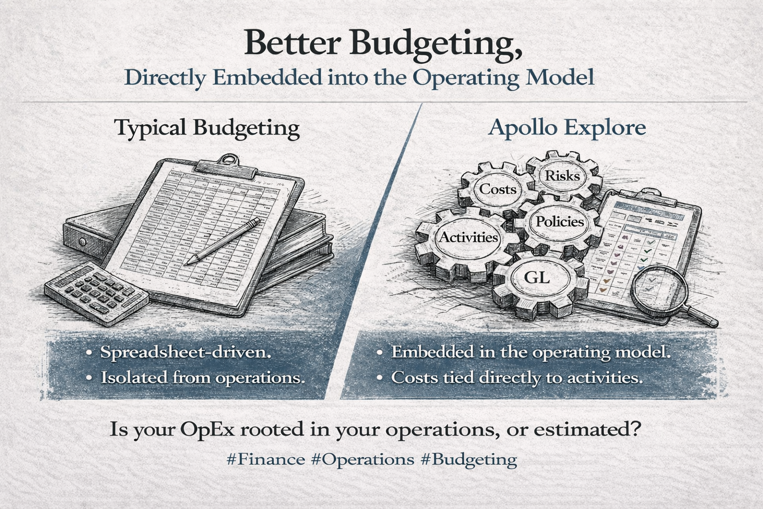 Appollo Explore embeds budgeting directly into the operating model: