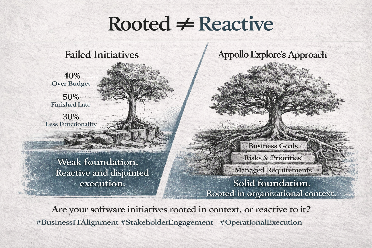 This reverses the traditional failure pattern by ensuring technology decisions are grounded in operational reality rather than abstract and incomplete requirements.